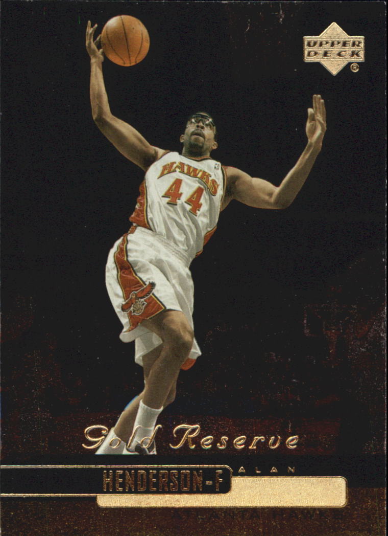 The 1999 Upper Deck Gold #3 Alan Henderson is a basketball trading card that features a parallel variation from the Upper Deck set. As part of the collectible sports cards series, this specific card is not a rookie card and does not fall under the memorabilia category. Alan Henderson, the player featured on this card, was active in the NBA during the late 1990s. The card's gold variation is sought after by collectors for its distinct design and is a representation of Henderson's basketball career during that era.